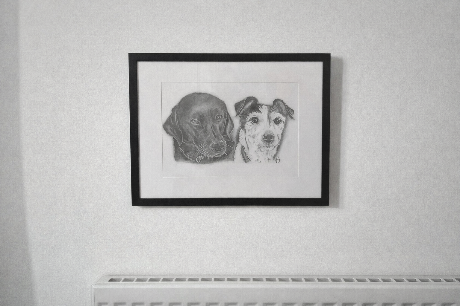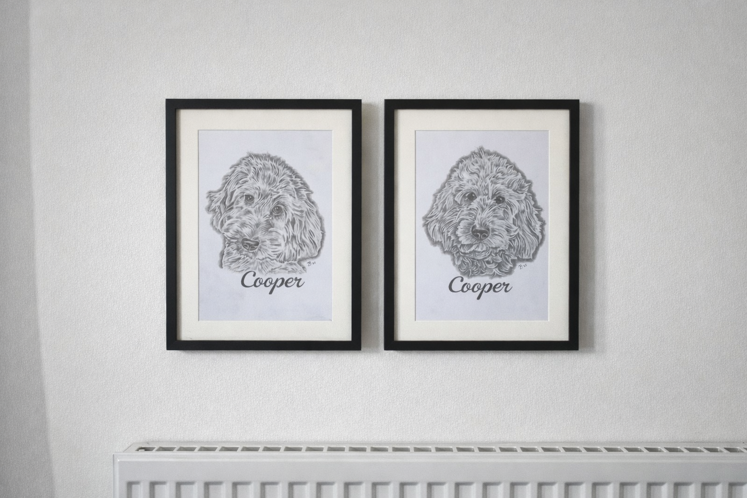 A3 framed double pet portrait. Ideal for more detailed work and larger pets