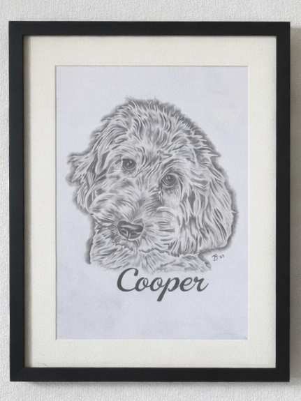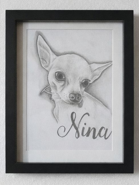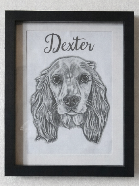 A4 framed single pet portrait, Ideal for more detailed individual portraits.