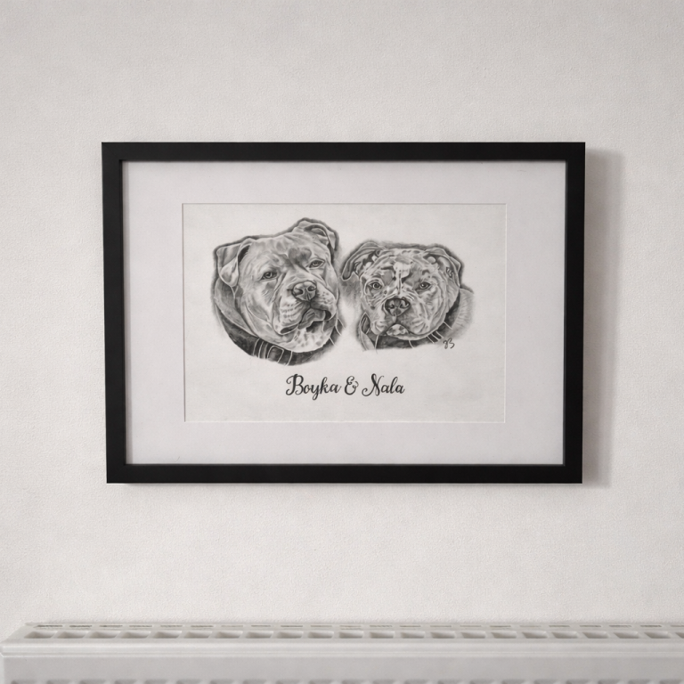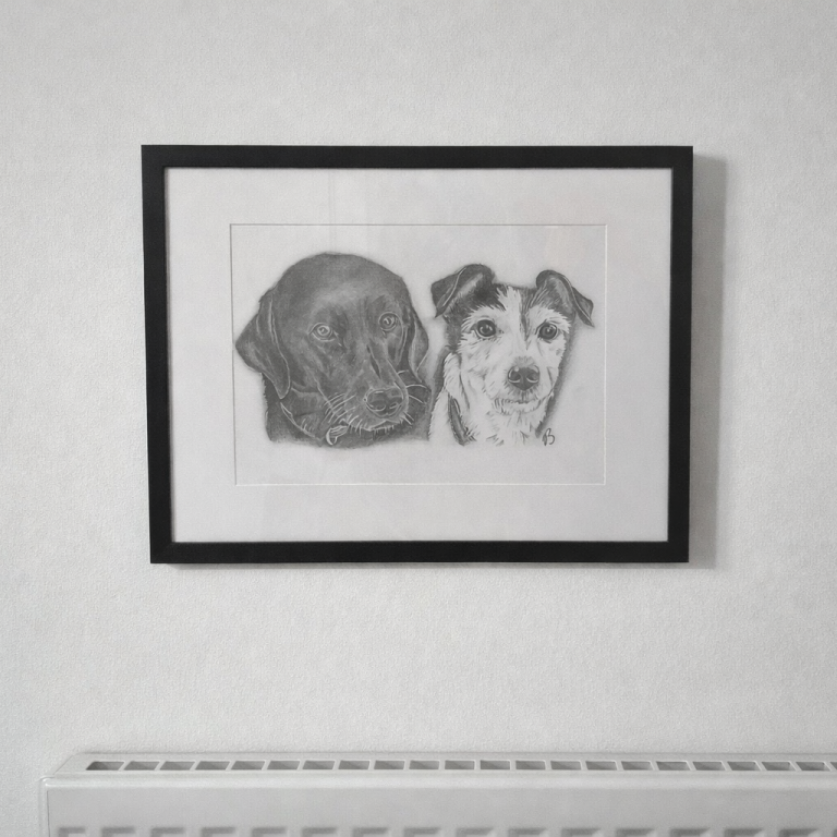 Highly recommend VB Art & Creations she drew a beautiful portrait of both our dogs and the work and detail is honestly incredible! We are honestly so pleased with our picture and cant recommend enough.