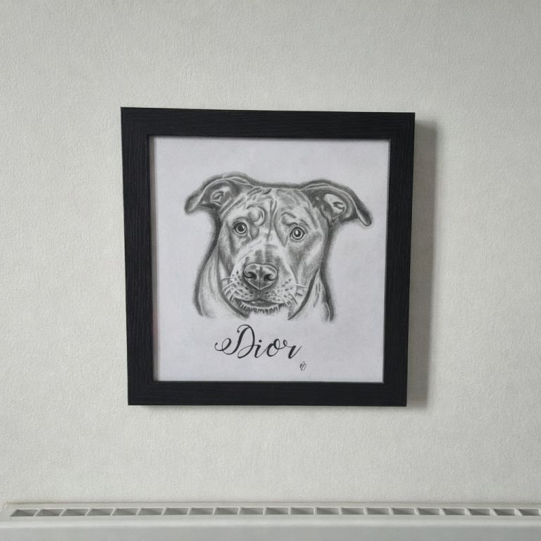 Sadly my dog passed away earlier this year and to say I was devastated would an understatement. I asked Vikii to do me a drawing and it was absolutely stunning, I now feel like I still have my dog at home with me, the details were spot on. Would highly recommend Vikii for your animal portraits. The love and attention she puts into them is 5*.